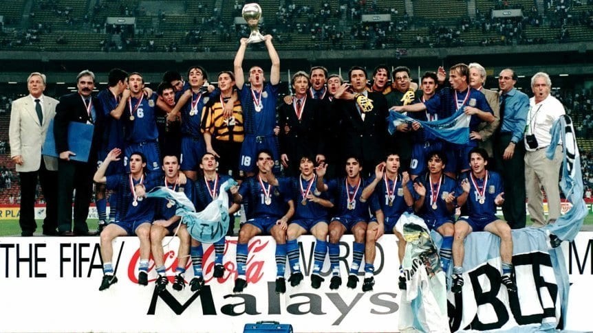 1995 - SUB-20 CAMPEÓN. La selección Argentina sub 20, dirigida por José Pekerman, gana el Mundial de CATAR al vencer en la final a Brasil por 2-0 con goles anotados por Leonardo Biagini y uno de Francisco Guerrero